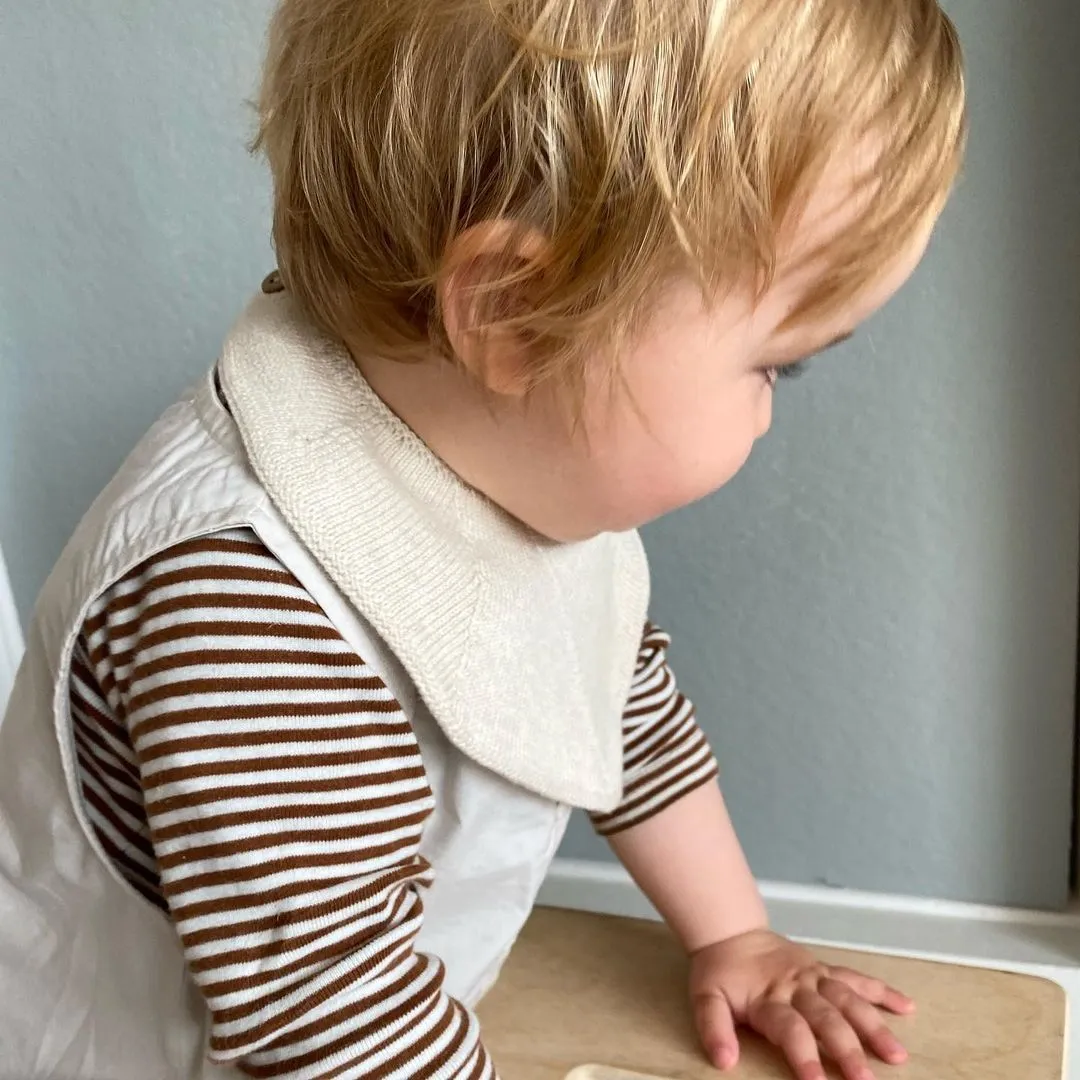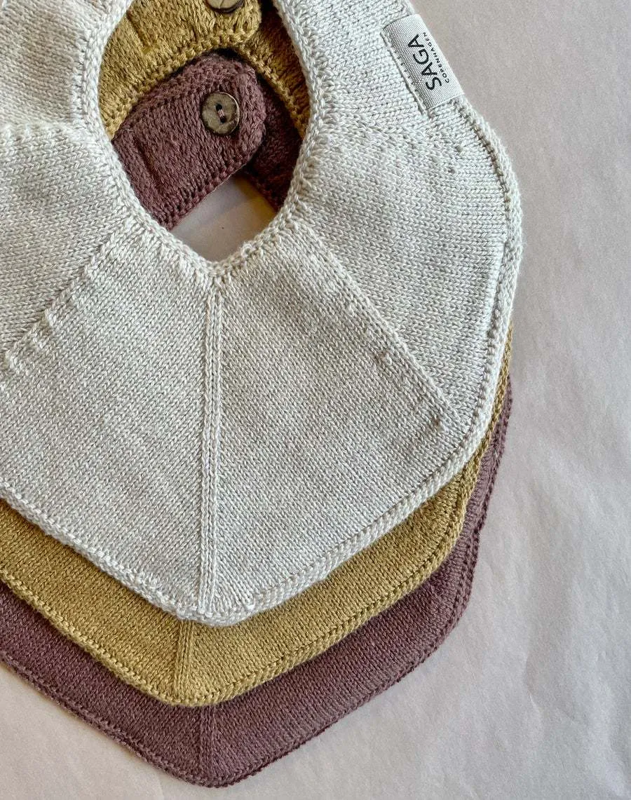 這款柔軟的針織長牙圍兜由GOTS認證的有機棉製成。