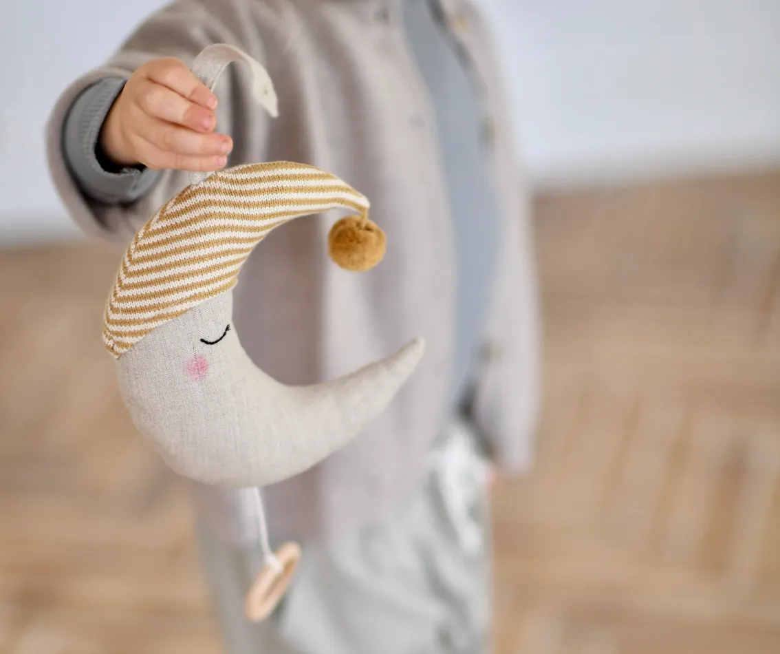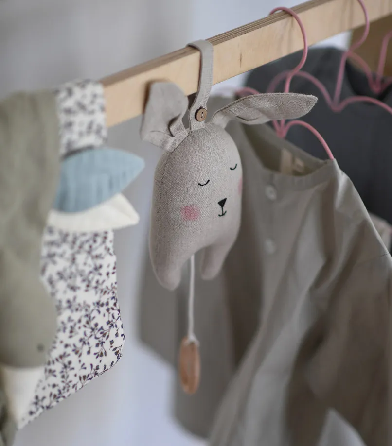 這款 行動Music ,戴著可愛的針織帽。它播放傳統的搖籃曲旋律,是兒童房的可愛配飾。產品描述:顏色: 亞麻材質:外層面料:100% 亞麻填充物:100% 再生滌綸 / 音樂盒月亮-尺寸:19 x 30 cm免子-尺寸:11 x 30 cm 保養說明:請勿洗滌。丹麥設計 | 印度製造
