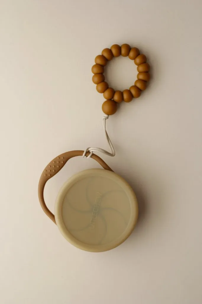 由100%的有機矽嬰兒製成。 這個零食杯有一個防塵蓋,緊密貼合的形狀可以防止灰塵,沙子或草皮進入嬰兒零食。